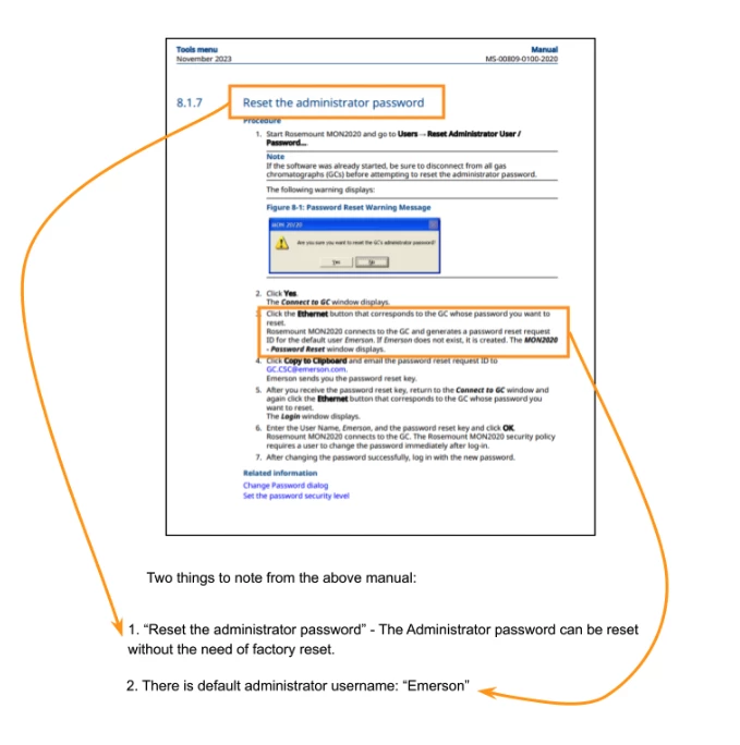 The ability to reset an administrator password without a factory reset is a bad security practice. Since those devices need to be able to operate offline, the passphrase validation has to be implemented on the device. Therefore, by reviewing the password validation procedures on the device, we should be able to reconstruct it.
