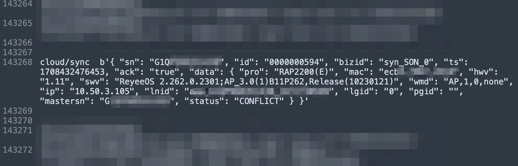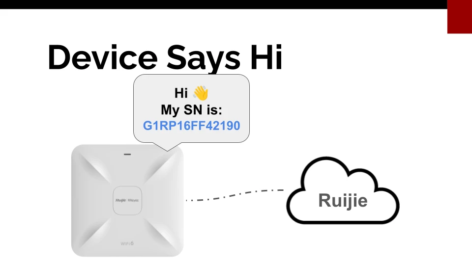 Once a device is connected to the network, it will try to initiate a provisioning process to Ruijie’s cloud systems that begins with sending a serial number to the cloud.