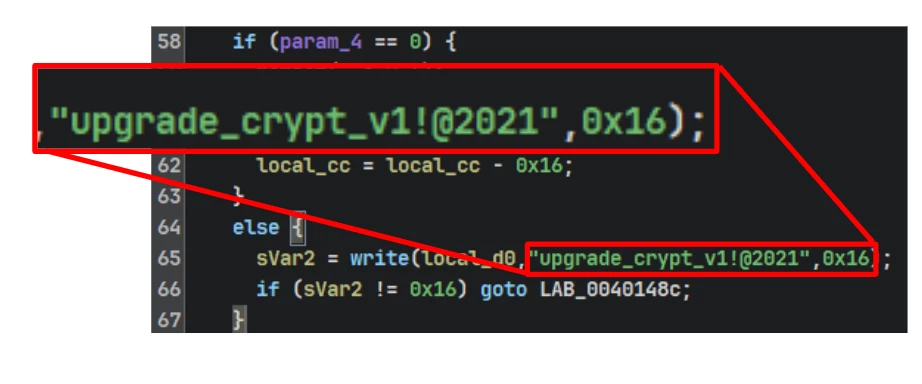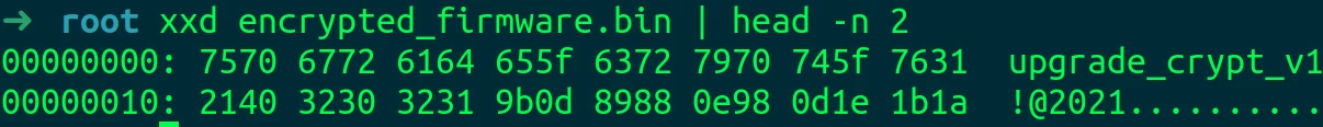 And upon further analysis, we confirmed that it is used to decrypt device firmware during the upgrade process of the device. We confirmed this by matching a magic string in the executable which matched the magic signature of the encrypted firmware file downloaded from the vendor’s website.