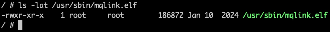 After some time, we managed to discover the binary handling most cloud communication: mqlink.elf.